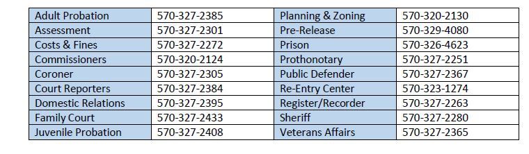 ATTENTION: The Lycoming County Sheriff’s Office will not call you if you missed jury duty. Do not divulge your personal information to anyone telling you that you did not appear for jury duty. Specifically, do not provide the caller with your credit/debit card or driver’s license information or your social security number.