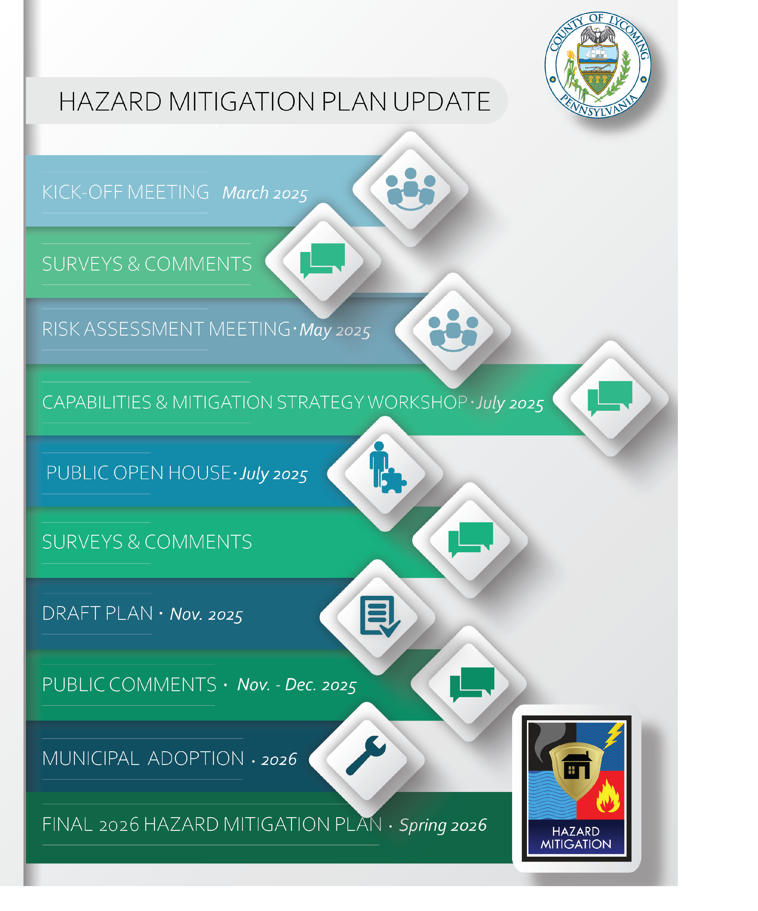 We need your input! Participate in the plan update process today by taking the community survey at https://www.surveymonkey.com/r/Lycoming2026HMP