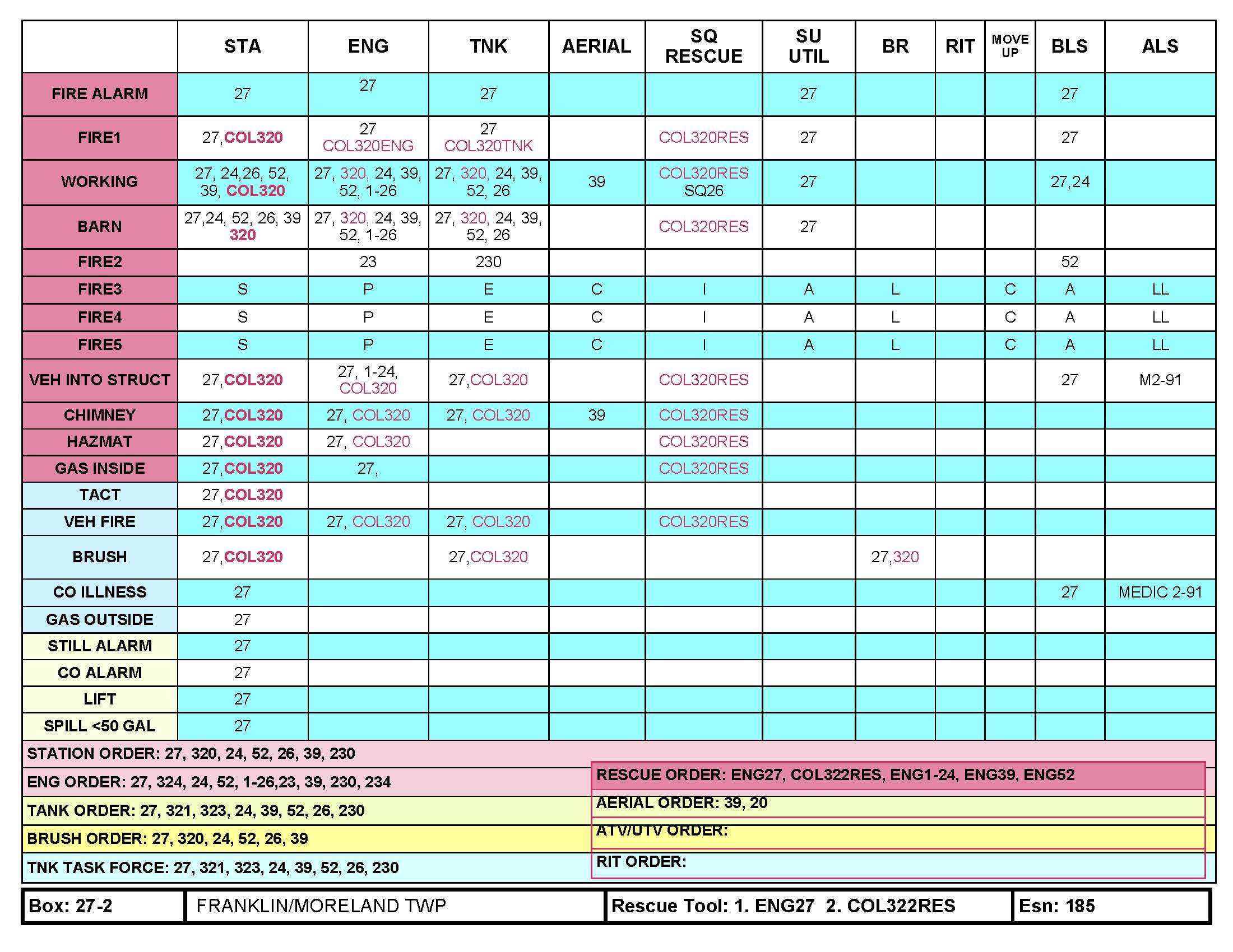 Station #27 Proposed Box Cards for chief to review (Projected date of activation is )